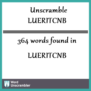 Above are the words made by unscrambling L U E R I T C N B (BCEILNRTU). Our unscramble word finder was able to unscramble these letters using various methods to generate 364 words! Having a unscramble tool like ours under your belt will help you in ALL word scramble games!